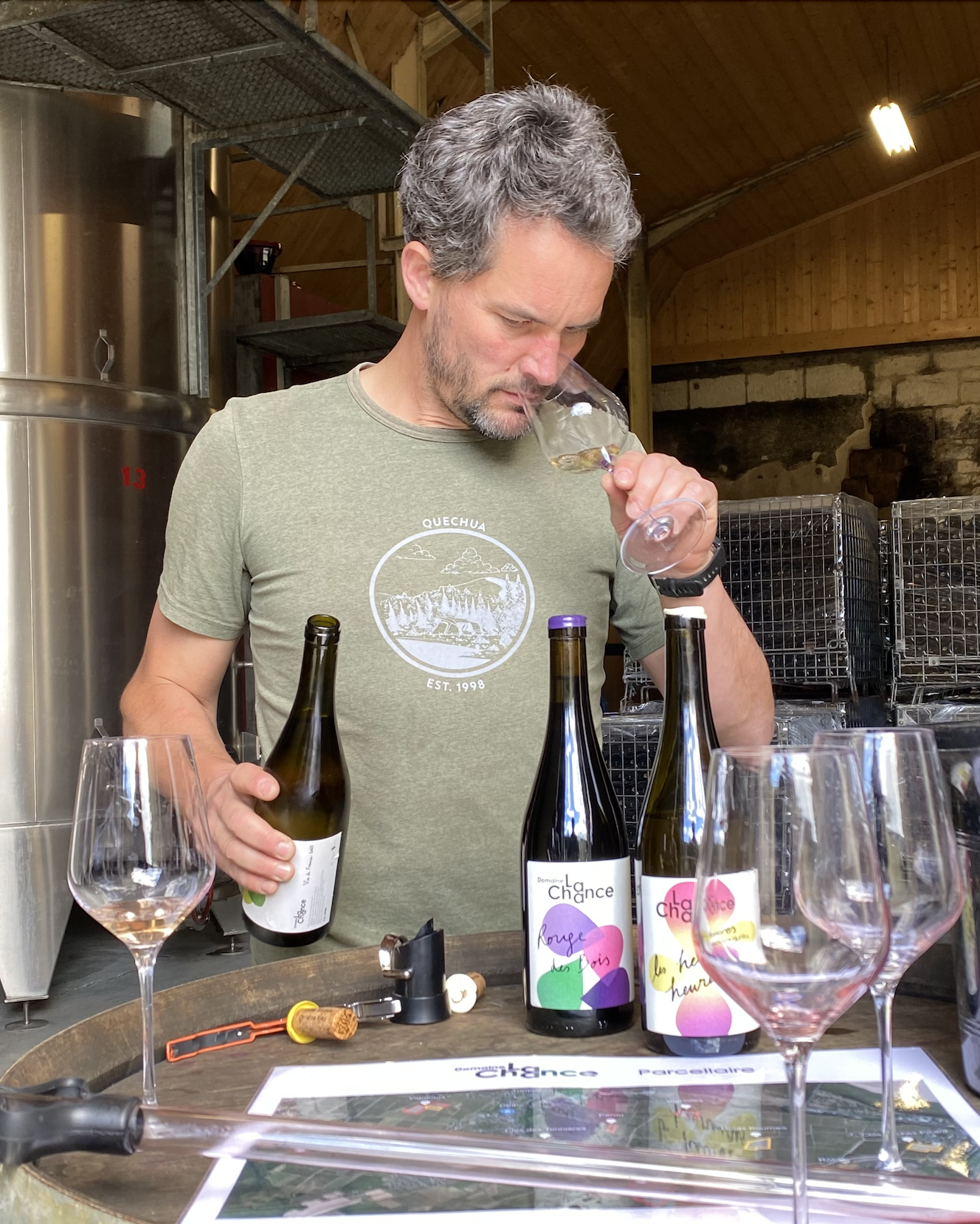 Domaine La Chance ligger i Fontevraud-l'Abbaye på den venstre bred af Loirefloden, mellem Chinon og Saumur. Her har Jérôme Becuwe og Kim Ly Kieu dyrket vin siden 2020. Et liv langt fra deres tidligere karriere i digital ledelse og luksuskommunikation i Paris.